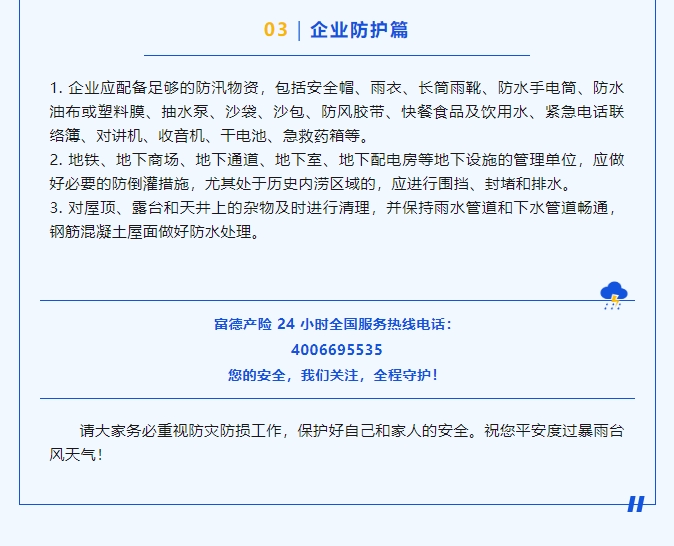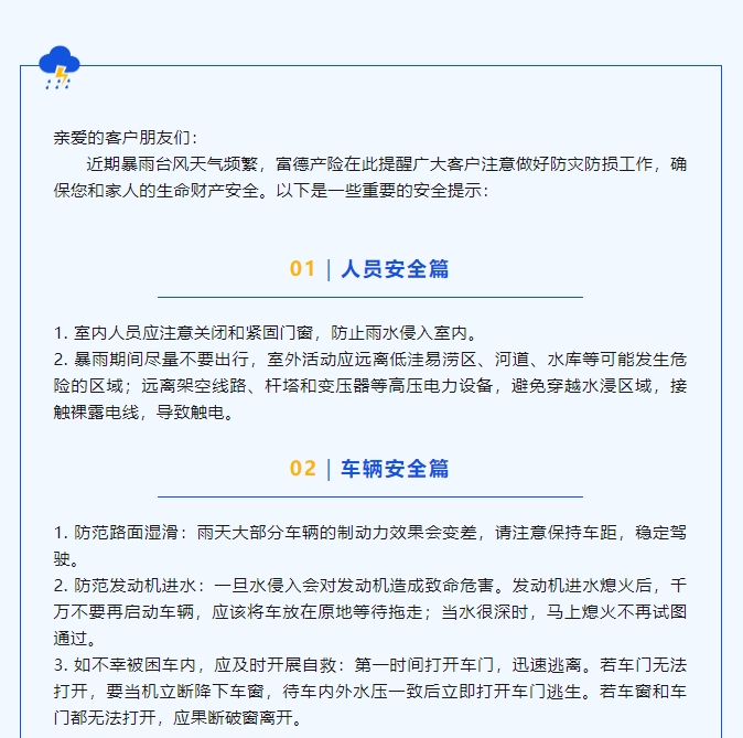 暴雨台风天,富德产险提醒您做好防灾防损工作!